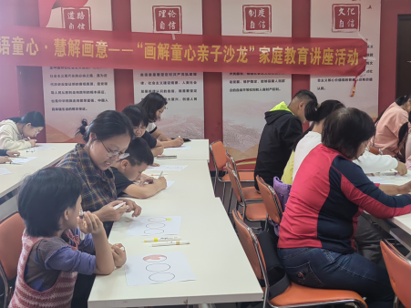 “绘语童心·慧解画意”家庭解说讲座蛊惑了14组亲子家庭参与,活动以儿童画图为绪论,活动开辟家长走进孩子内心寰宇,构建证据与信任的亲子关系。热身游戏“乌龟与乌鸦”冲破隔膜,营造温馨氛围;“心绪词接龙”和“家长扮演心绪词”款式通过互动让亲子直不雅贯通心绪抒发,家长体会到非话语疏导的紧要性;中枢款式“画出心绪词”中,亲子合营将概括心绪滚动为多彩画作,如红色绘“震怒”、蓝色表“安心”,孩子展现创造力,家长学会解读热沈需求;终末,“画作共享会”与“亲子疏导工夫微课堂”由专科讲师带领,传授“三步画解疏导法”。家长响应活动教会他们“蹲下来看画、静下来听心”,杀青从“看见”到“懂得”的变嫌。这次活动不仅是解说讲座,更是一场“情谊双向奔赴”,强化了家庭纽带。
